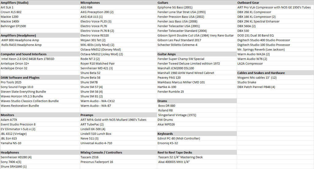 Equipment List